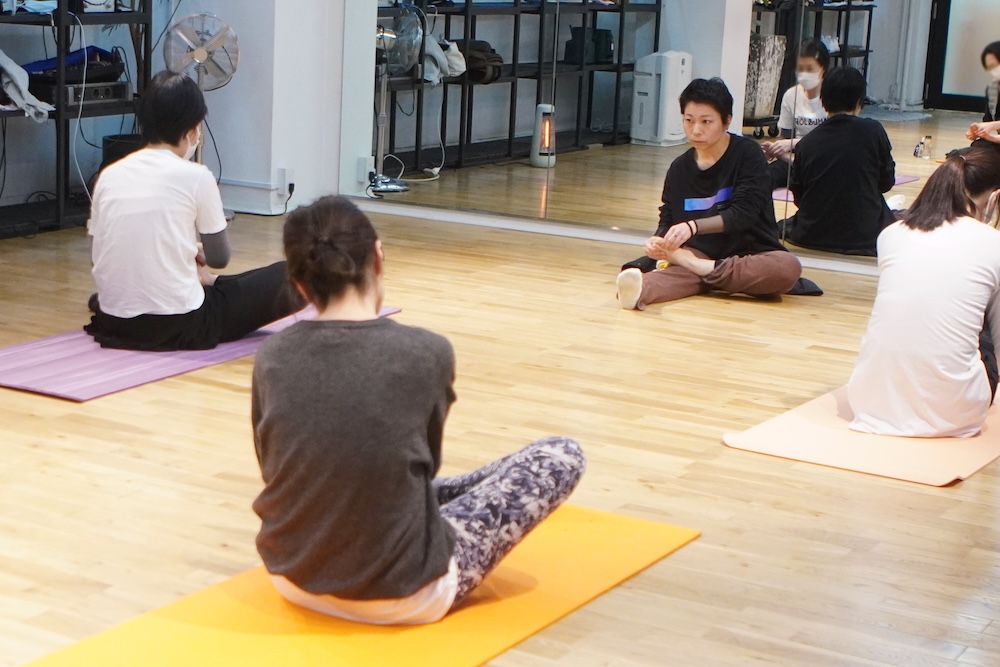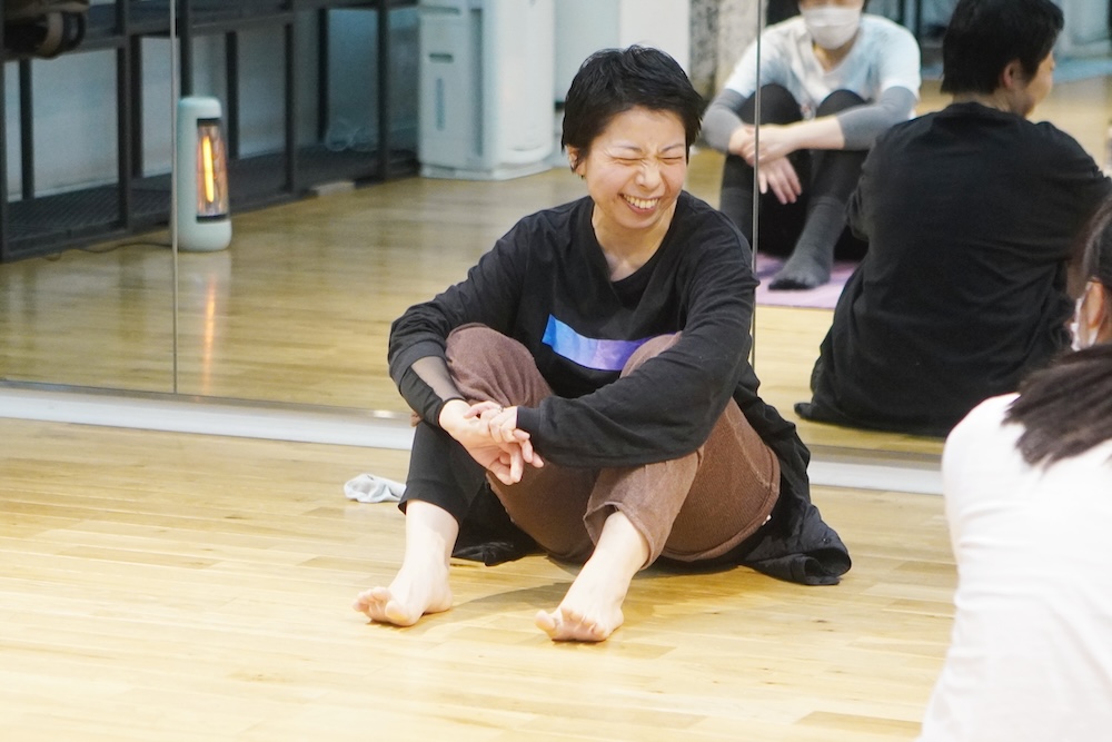 レッスンはフロアから、足の先を温めるところから始めます。